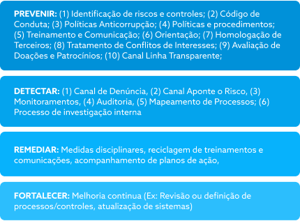 Este Programa se aplica a todas as empresas controladas e tem o objetivo de prevenir, detectar e remediar a ocorrência de desvios, fraudes, irregularidade e atos ilícitos, principalmente no ambiente público, bem como fortalecer os princípios éticos e padrões de transparência.